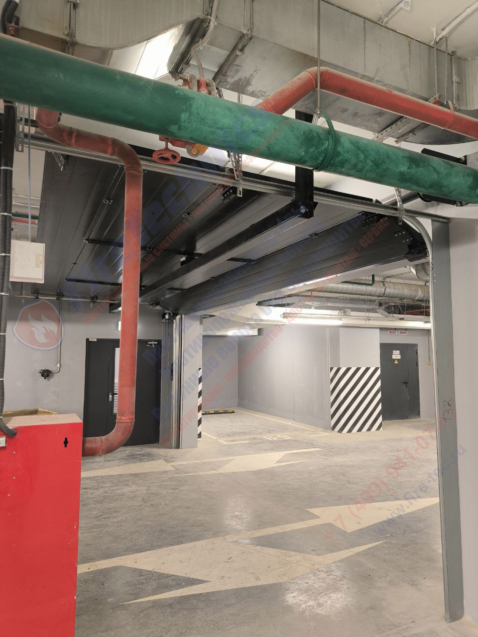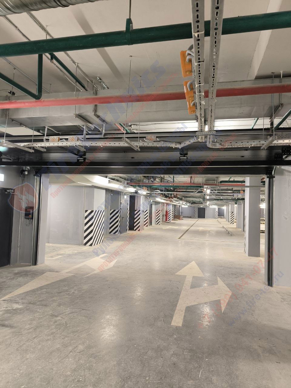 //Секционные противопожарные ворота FireTechnics-S EI60 в паркинге ЖК